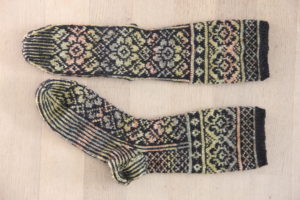 Diese Socken mit Norwegermuster von Drops hatte ich schon länger begonnen und nun fertig gestrickt. (Modell 143-33 Irish Dream, Material: Drops Fabel je einmal in Schwarz und mit Farbverlauf)