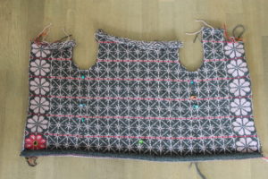 Wie man sieht, ist auch diese Arbeit schon recht fortgeschritten. Die vordere Mitte sowie die Armlöcher sind schon aufgeschnitten. Unten links habe ich mal eine Stckprobe gemacht, bin aber noch nicht restlos überzeugt und muss noch ein bisschen ausprobieren.