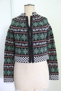 Im Dezember 2017 habe ich diese Jacke begonnen. Alles ging gut bis ich den ersten Ärmel fast fertig gestrickt hatte. Beim Anprobieren merkte ich, dass er vorne zu weit wird. Also zurück zum Start, ich öffnete alles, fasst alle Maschen wieder auf Nadeln und legte die Jacke beiseite…….