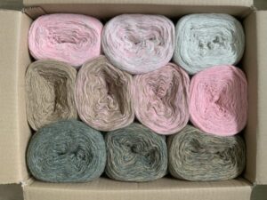 Im Newsletter von «Garnmanufaktur» sah ich ein Kit für eine Decke aus einem Alpaca-Wollgemisch. Es gibt sehr schöne Farbverläufe, ich entschied mich natürlich für eine Kombination mit rosa.