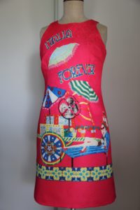 Pfauenkleid, Material: bedruckter Polyesterjacquard von Aliexpress mit Blende aus Tussaseide.